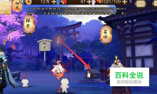 回到后院,可以看到刚才的花被换上青行灯了。这时候在点击“选择食物”,就可以等待召唤宠物了。