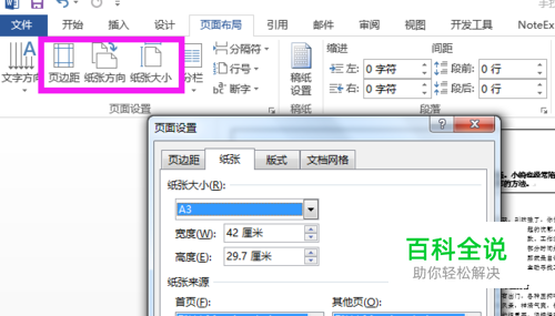 首先就是新建文档,设置好纸张大小和页边距,小编这里用的是横向A3,页边距上下3厘米,左右2.5厘米。如果是拿着看的就设置文字大小为5号,甚至可以更小。