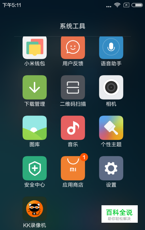 首先找到手机桌面上的系统工具文件夹,如下图所示