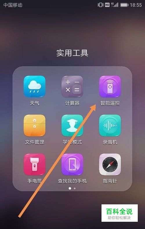 在我们的手机桌面上找到 实用工具 这个选项,这个里面默认有很多小工具,因此我们需要点击进入找到我们想要的工具,点开找到 智能遥控 点击进入,如图所示~