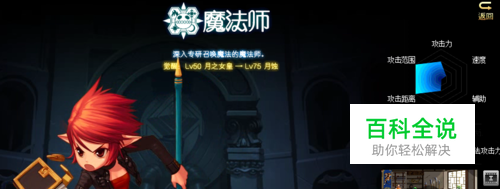 首先我们可以看到召唤师的优势是攻击距离和范围,但是其它属性有所欠佳,我们需要根据其优势进行游戏,避开劣势。魔法师通过第一次转职就可以变成召唤师,召唤师在50级的时候可以一觉,变成月之女皇;75级的时候可以二觉,变成月蚀,如图所示。