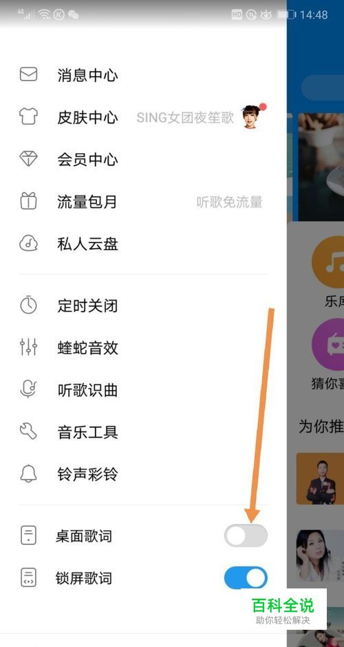 开关打开后,歌词就可以在我们的手机桌面上显示。你可以进行其它的操作,歌词会一直在桌面显示,这样就可以边做其它事边看到歌词了。