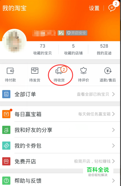 打开淘宝,在【我的淘宝】里有【待收货】,打开待收货。