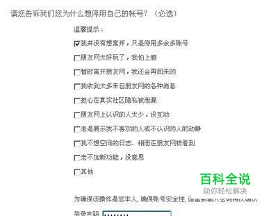登陆朋友停用账号页面后,会看到下图所示的页面,选择一个自己退出朋友网的原因,是必须选的哦