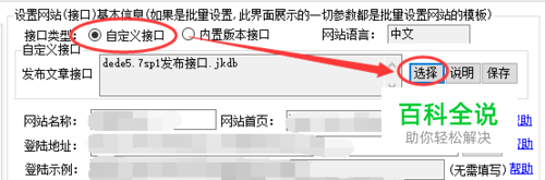 打开接口设置界面后,接口类型点击“自定义接口”,然后点击右侧的“选择”进入自定义发布接口管理界面。