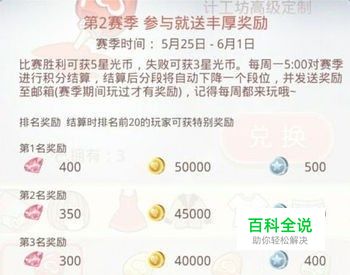 星光币最主要的获取方式就是从竞技场里获得,比赛胜利可以获得5个星光币,失败只能获得3个了。 每周一5.00会对赛季进行积分结算,结算后分段将自动下降一个段位,并发送奖励至邮箱。这也是另一个星光币的获取方式,不过一周才能有一次! 当然啦每天的首次分享也可以获得三个,小伙伴们别忘了分享哦,积少成多!