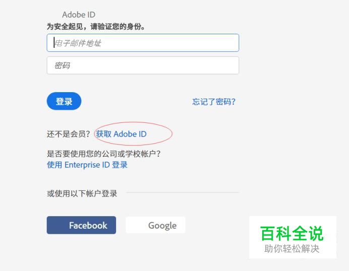 浏览器访问adobe 账户的官网https://accounts.adobe.com,进入登陆页面,如下图,点击获取adobe id