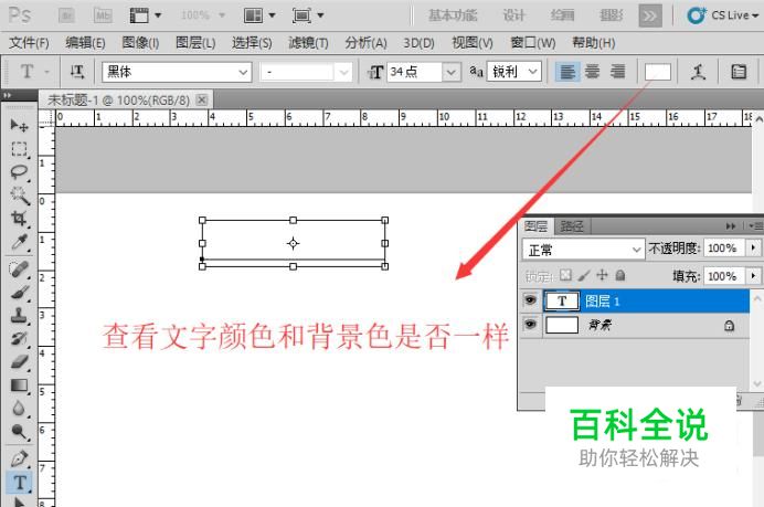 首先要排查的就是文字的颜色是否和画布的背景颜色一样,如果一样的话,文字是看不出来的,如下图所示