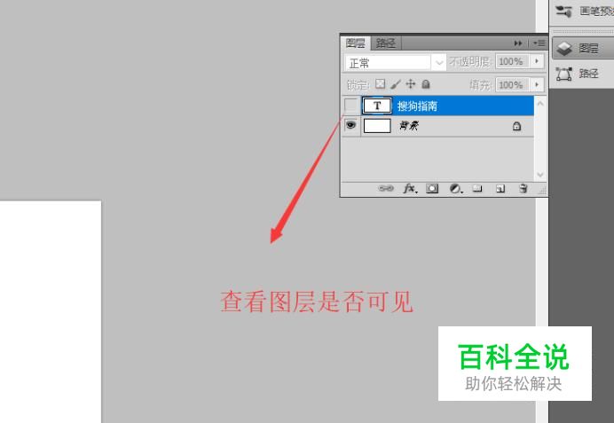 接下来我们需要排查文字的图层是否设置了可见性,只有可见文字图层才会正常显示,如下图所示