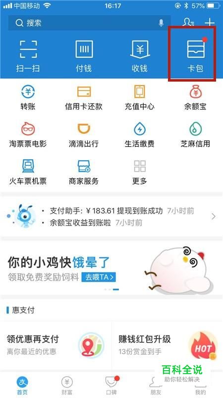 然后点击屏幕右上方的卡包,如下图所示。