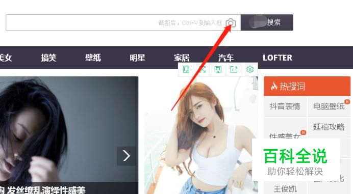 进入“图片”界面后,在搜索框处,有一个“相机”的图标,点击这个图标。