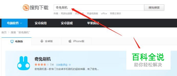 首先我们在搜狗下载平台搜索“奇兔刷机”,搜索到后我们下载安装。