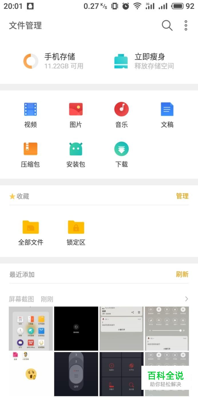 进入文件管理界面,在下方选项中点击“锁定区”
