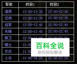 活动介绍 参与条件 在游戏中只要玩家的君主等级达到20级,就可以城池左下角百战千军去参加活动了; 参与时间 在百战全军中,根据玩家当前级别,所参加的级别开始时间段也有所不同;