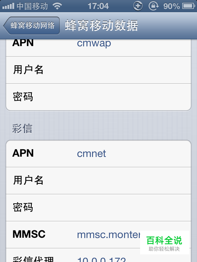 彩信: APN:cmwap 用户名:空 密码:空 MMSC:mmsc.monternet.com 彩信代理:10.0.0.172 彩信大小:102400