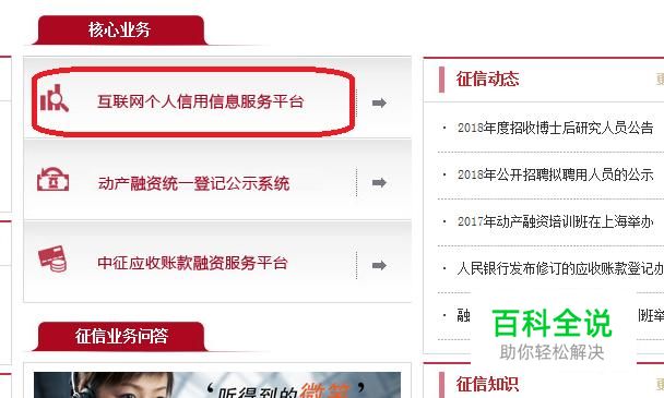 进入官网后,首页是没有注册的地方的,我们需要点击“核心业务”下面的“互联网个人信用信息服务平台”。