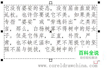 在工具箱中单击“选择工具”,单击文本对象,在文本框右下角会出现两个控制符号(红色矩形标注出来了)。