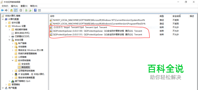 QQ 7.5版以后真是太流氓了:即使不启动运行QQ,后台依然会有一条QPCore Service服务进程,且这条服务不能禁用,否则导致QQ启动报错;不能改为手动启动,改完下次重启又给你改回自动。 这是我见过的最流氓最流氓最流氓最流氓最流氓最流氓最流氓最流氓的软件! ============================================================ 更新,试过好多种方法不凑效,终于用“软件限制策略”给搞定了。清清静静的使用电脑的感觉真好!!!下面是方法,供各位参考。 共需要限制三处QQ程序,不是限制QQ.exe本身,而是限制主程序的更新程序和安全防护更新程序 C:\Program Files (x86)\Tencent\QQ\txupd.exe C:\Program Files (x86)\Common Files\Tencent\QQProtect\Bin\QQProtectUpd.exe C:\ProgramData\Tencent\QQProtect\SelfAuTemp_DeepBoy\NewFile\QQProtectUpd.exe 在组策略-软件限制策略-其它规则里“新建哈希规则”