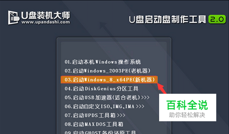 第一步: 把存有系统镜像文件的U盘装机大师u盘启动盘插在电脑usb接口上,然后重启电脑,在出现开机画面时用一键u盘启动快捷键的方法进入到U盘装机大师主菜单界面,选择【02】运行U盘装机大师win8pe防蓝屏(新电脑),按回车键确认选择