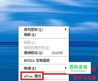 解决方案 G460A为例: 在桌面空白处右键,然后左键单击桌面右键菜单中“nView 属性”或“nView选项”, 如图: