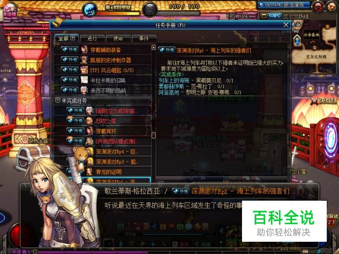首先我们进入游戏,按F1呼出任务菜单,找到歌兰蒂斯的海上列车深渊任务并接取。