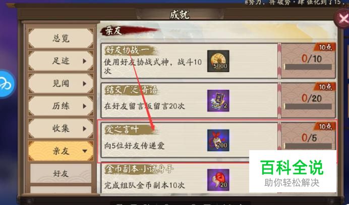 最近新出的一个亲友任务,玩家向5位好友传递爱就可以获得爱之言叶的成就。今天为大家讲解一下阴阳师怎么向好友传递爱。
