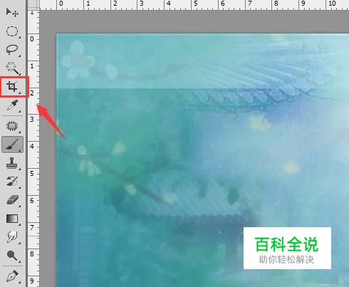 打开图片之后在工具箱内找到裁剪工具,如图所示: