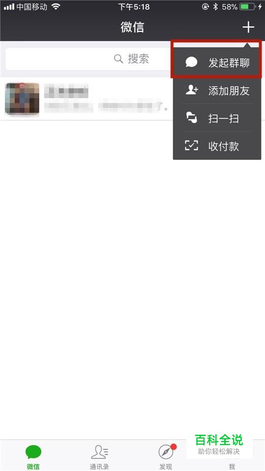 然后点击屏幕右上方的发起群聊,如下图所示。