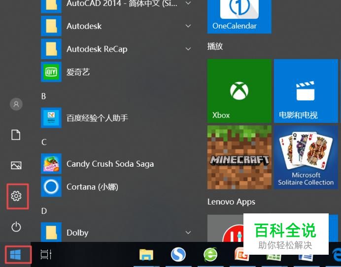 首先,我们点击电脑左下角的微软按钮,弹出的界面,我们点击设置;