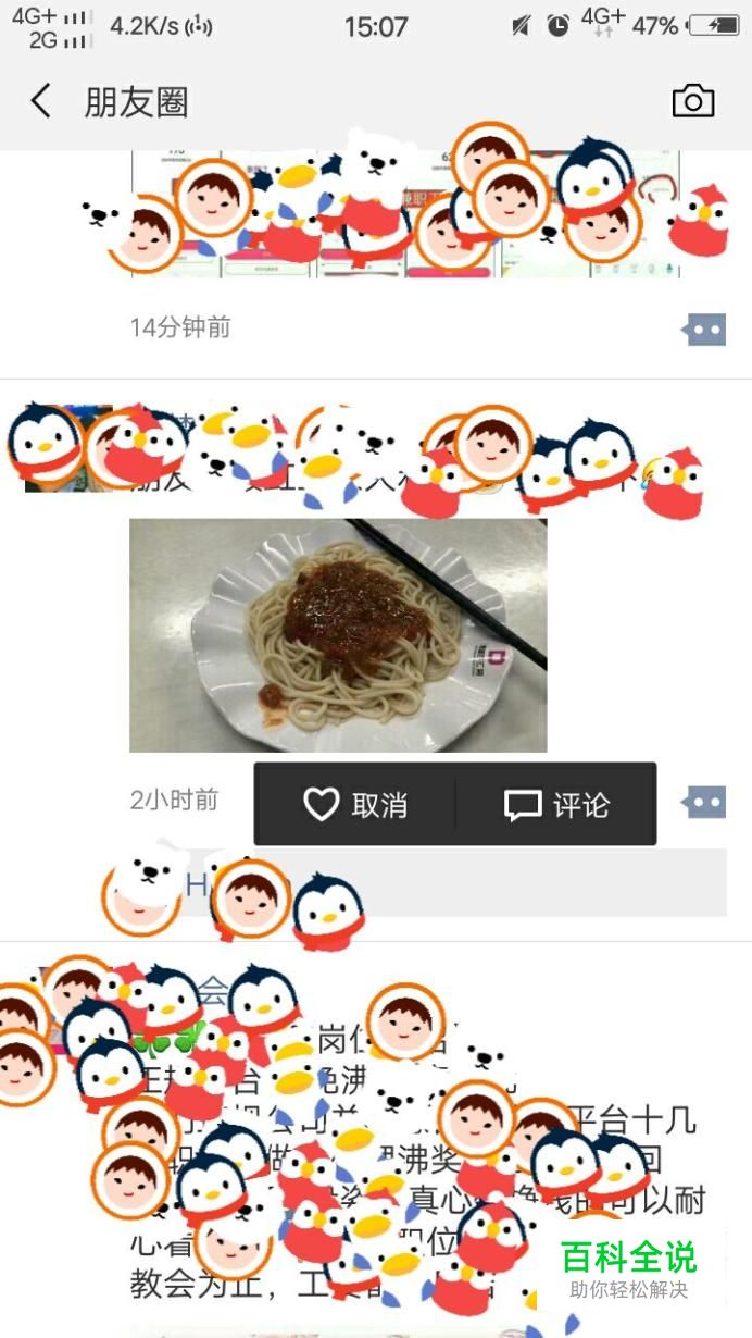 紧接着我们在里面找到自己要取消点赞的朋友圈,如果要取消点赞的话,我们点击下方的小方框,再点击爱心出的取消即可。