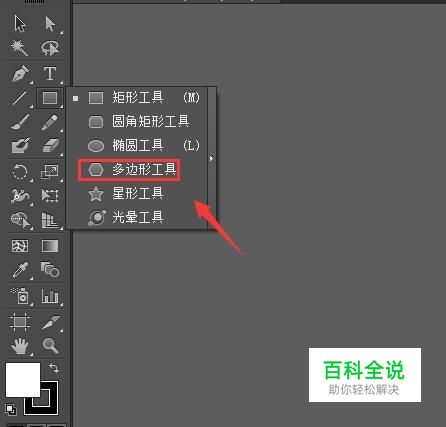 打开AI这款软件然后在工具箱内找到多边形选项,如图所示: