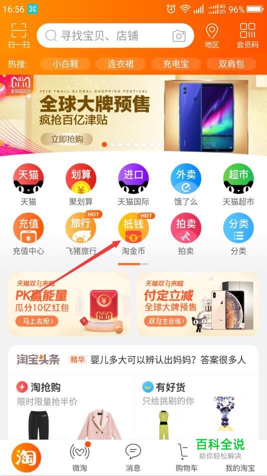 首先,打开手机淘宝,进入界面后,在中间找到“淘金币”,点击。