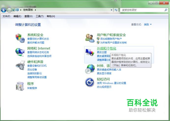 进入“控制面板”后,点击进入“外观和个性化”。