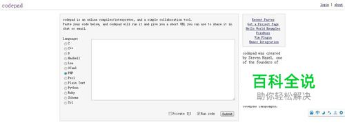 CODEPAD 它是一款在线编译/解释工具,支持 C,C++,PHP,Perl,Python和Ruby等众多语言。
