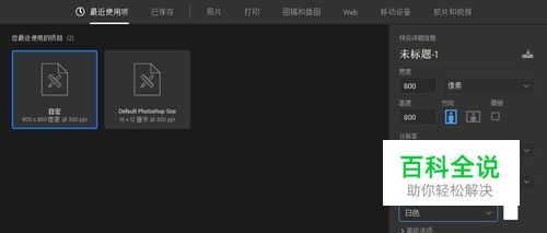打开ps软件,新建一块画布,画布大小设置为800*800,背景色设置为白色。