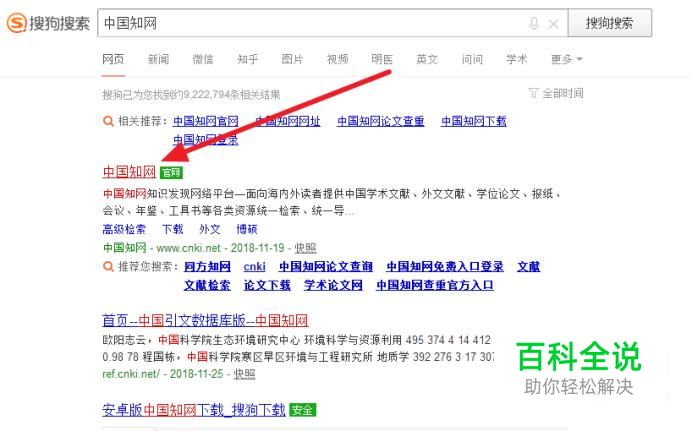 首先打开搜狗浏览器,输入中国知网并点击搜索,打开其官网。