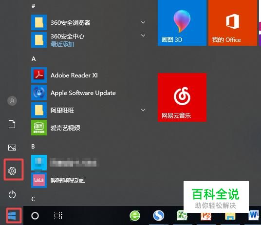 首先,我们点击电脑桌面左下角的微软按钮,弹出的界面,我们点击设置;