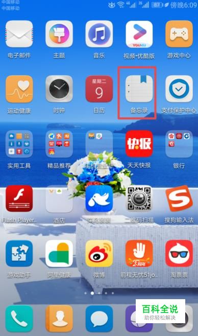 首先,我们打开我们的华为手机,然后我们点击手机桌面上的备忘录;