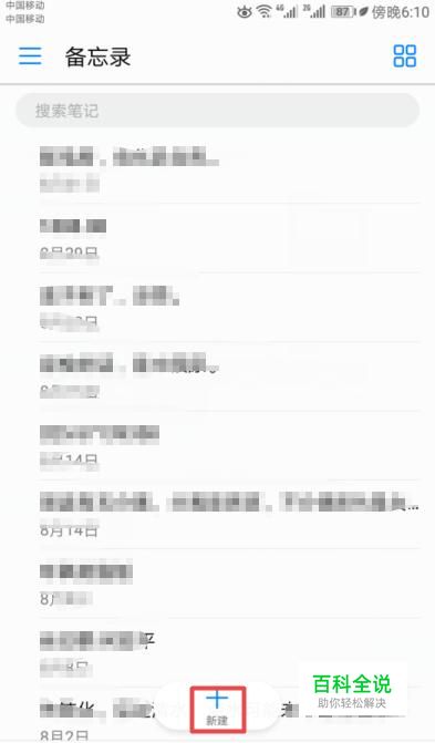 进入备忘录之后,我们点击新建;