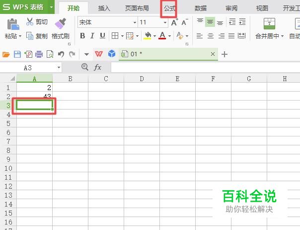 之后,我们选中图示中的单元格,然后我们点击公式;