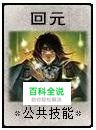 回元:在出牌阶段,您可以消耗四个粮草,恢复一滴血量。若您血量值已经达到上限,不可发动,当然也没有发动的必要。本技能适用于血量较少的英雄,即只拥有三滴血的英雄。