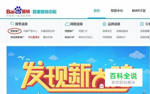 接下来我们会看到很多的菜单,我们在页面上可以看到有一个搜索推广。