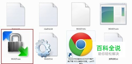 winscp这款软件是绿色软件,不需要在电脑上安装即可使用,在文件夹中找到 WinSCP.exe 这个应用程序文件,鼠标双击执行这个文件。
