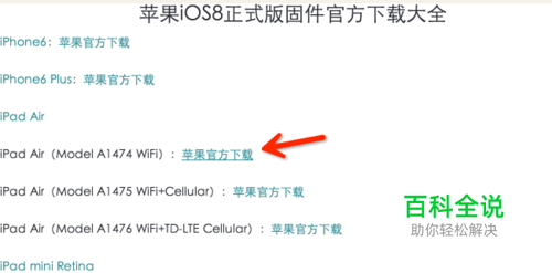 在打开的页面中,找出你需要下载的对应的iOS8的设备平台版本,然后开始下载该固件。
