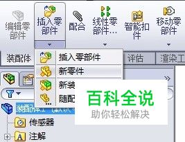 从commandmanager面板中点击插入零部件——新零件,或从插入菜单中选择插入——零部件——新零件。