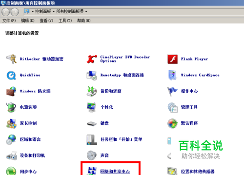 打开“控制面板”,找到“网络和共享中心”, 控制面板\所有控制面板项\网络和共享中心