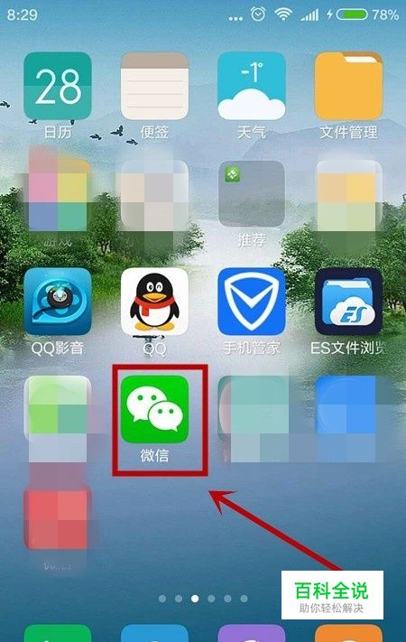 如图所示,点击箭头所指的“微信”图标,进入微信里面。