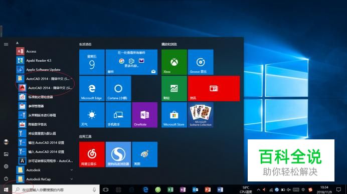 如图所示,展开左侧树形目录结构。点击"AutoCAD 2014 - 简体中文(Simplified Chinese)"项,用于打开"AutoCAD 2014"应用程序。