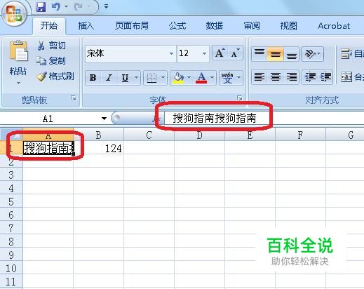 首先,我们打开一个excel文档来演示,如图所示,我们在第一个单元格中输入内容,因为输入文字过多,导致无法全部显示。