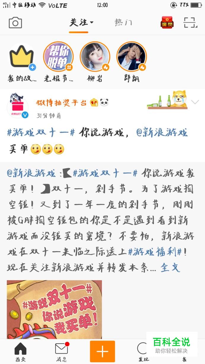 首先需要下载微博app (新浪微博为例),点击打开进入微博主页面。